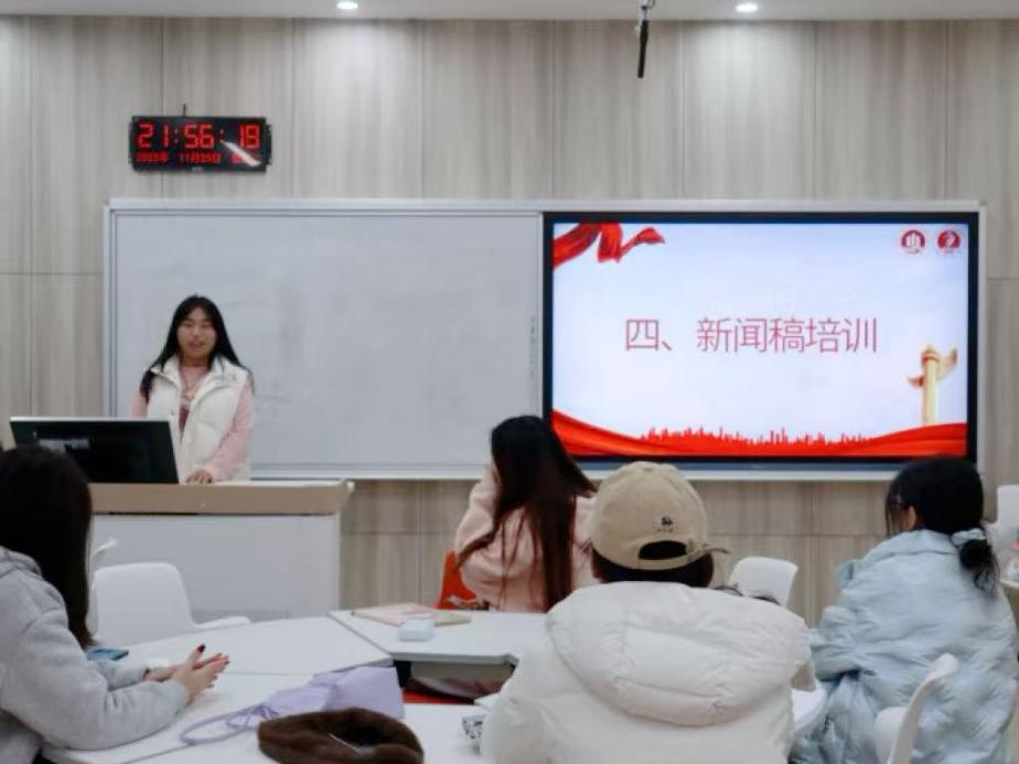 培训以“思想铸魂”开篇。分团委学生会学生副书记李怡君领学了党的二十届四中全会精神,并组织大家围绕“如何将全会精神有机融入团学工作实践”展开深入研讨,进一步坚定了服务学院发展大局、助力同学全面成长的初心使命。随后,培训转入“实务强基”阶段。学拓部执行主席陈玲仪结合“挑战杯”“简历设计大赛”等学院品牌活动的筹办经验,系统梳理了从主题构思、方案设计、物资筹备到现场管控、效果评估的全流程管理要点,并针对人员临时变动、设备突发故障等常见问题,分享了实用应对技巧。办公室执行主席庞莹聚焦办公软件操作实践,解决了成员们在撰写工作总结、制作活动方案时遇到的具体操作难题。新媒体工作室分管主席李晓芝则通过分析优秀新闻稿案例,从“为何写作、写作何为、如何写好”三个维度,详细讲解了新闻写作的规范、要点及常见误区。